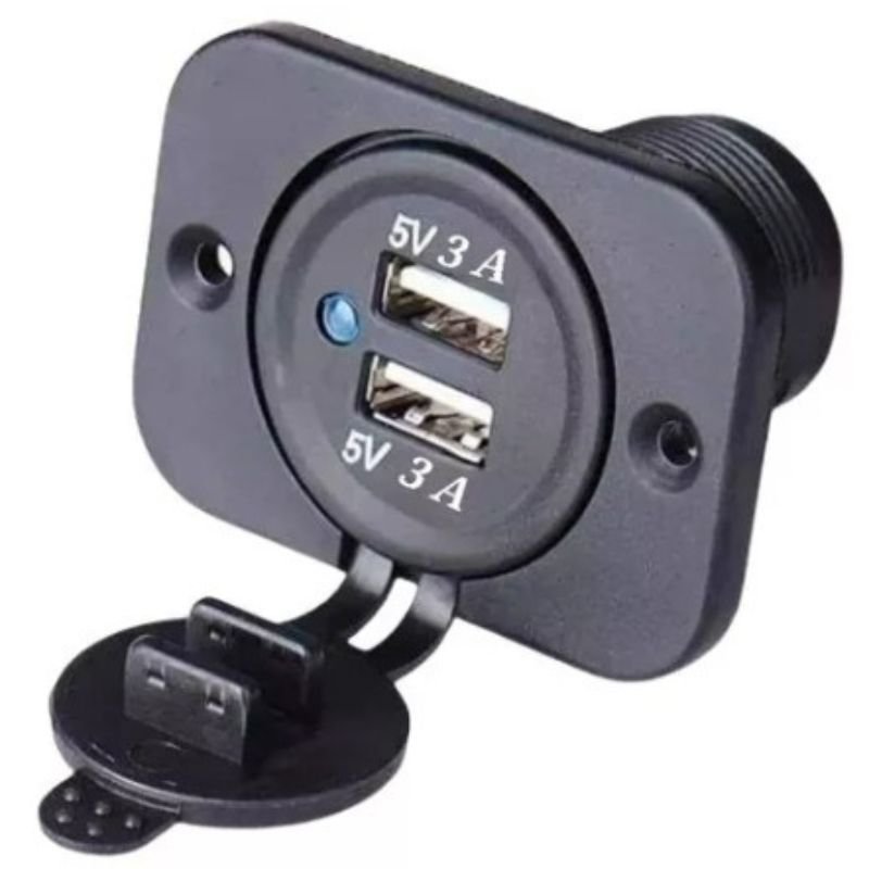 Cargador con dos puertos USB, diseñado para que los pasajeros puedan cargar múltiples dispositivos simultáneamente, ofreciendo mayor conveniencia y comodidad en trayectos largos.