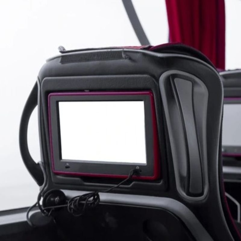 Pantallas instaladas en las áreas comunes del bus, perfectas para proyectar películas, series o información relevante para los pasajeros durante el trayecto.